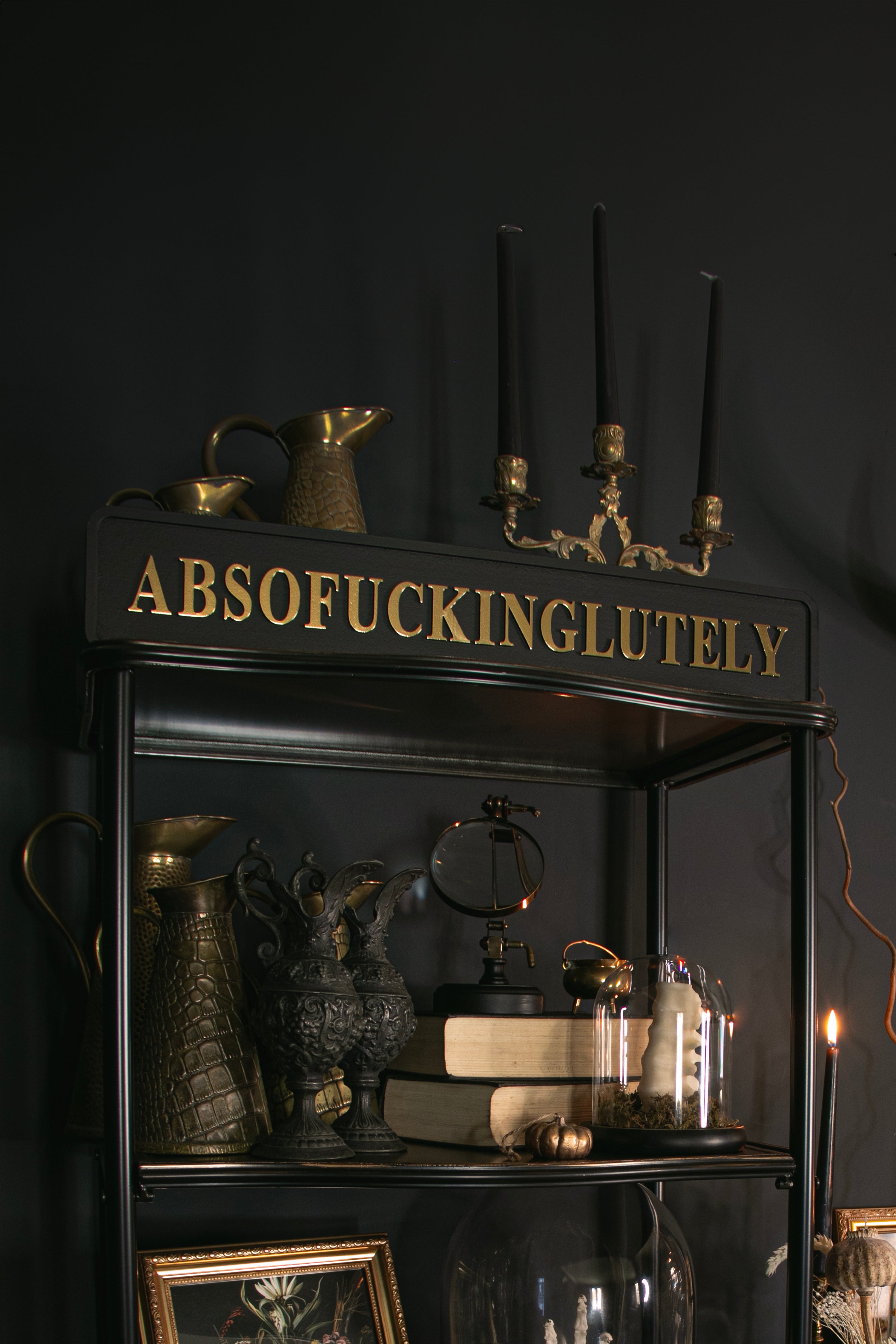 This black MDF sign with gold lettering has no fixings so you can style it your way. Perfect for shelf styling, or attach D-rings or command strips for wall mounting.