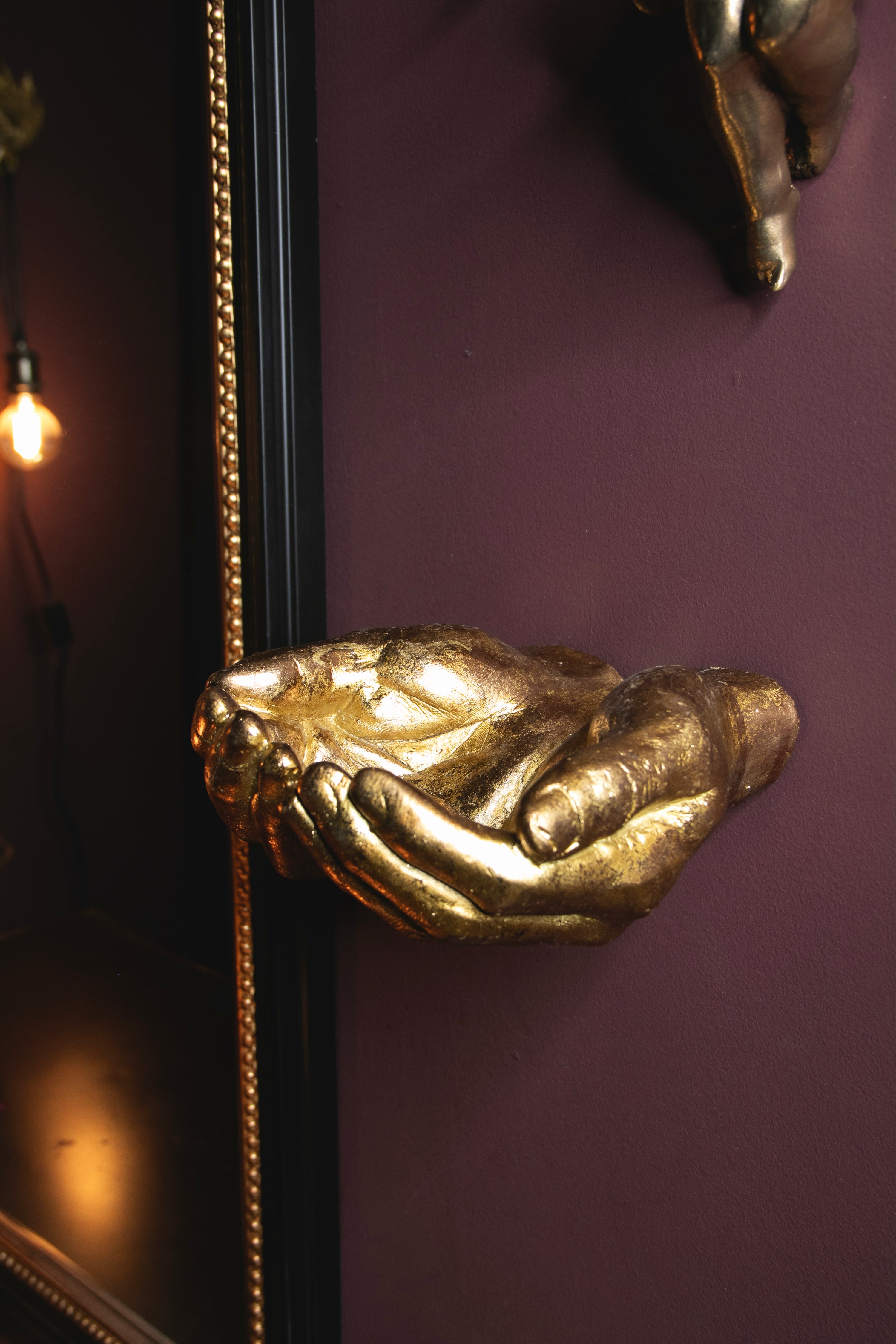 Display your treasures with the Wall Mounted Antique Gold Hands Storage Bowl. Perfect for showcasing delicate trinkets or holding keys and coins, it's both functional and sophisticated.