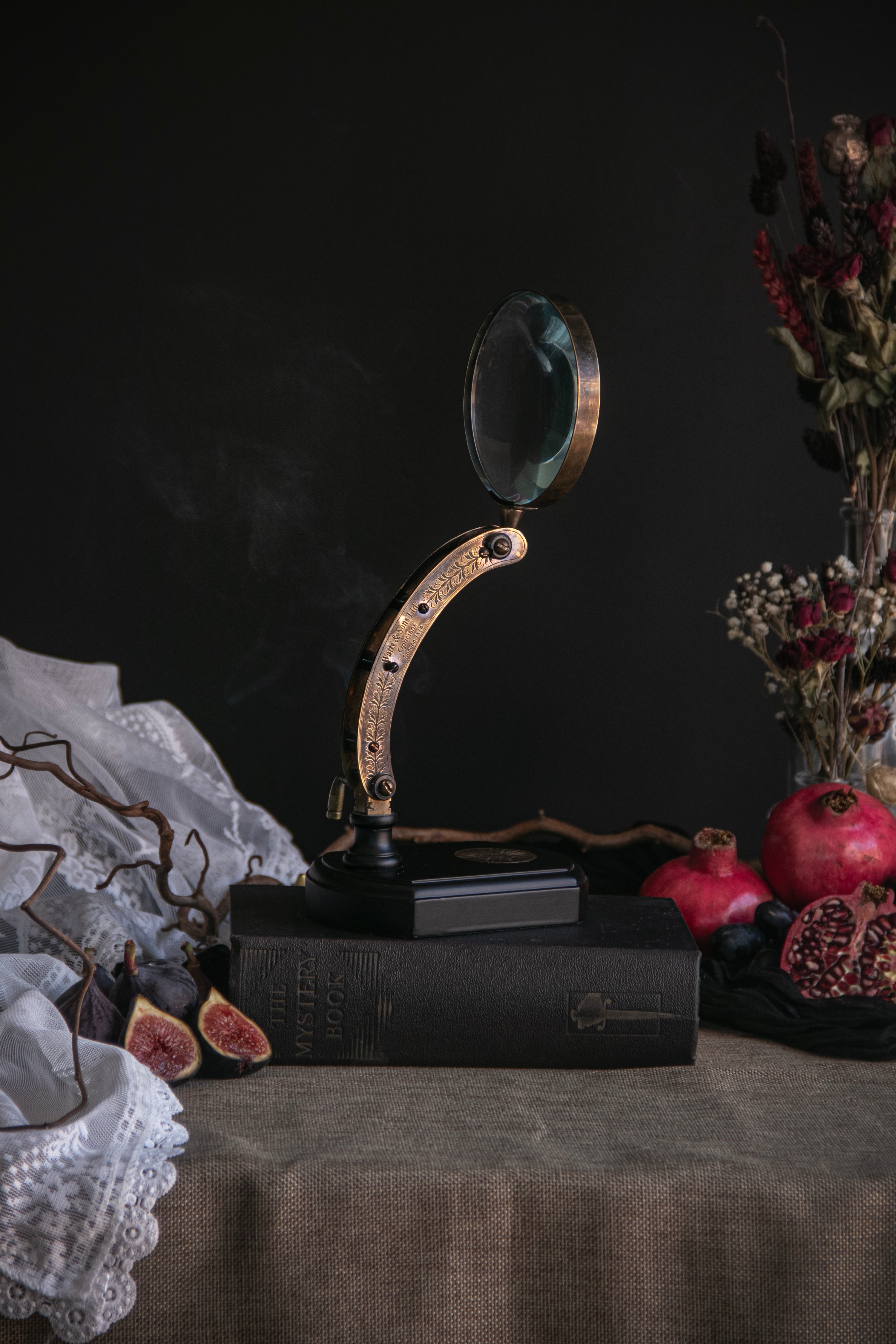 Adorn your desk with this stylish Brass Magnifying Glass on Adjustable Stand. The solid brass material and adjustable stand make it the perfect dark academia desk accessory and a great tool to discover the finer details of your studies.