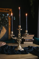 Romantic by design, an ornate candelabra for softly lit evenings. A show stopping piece for tables and sideboards.