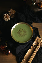 Screen-printed and gilded glass plate with an ex-voto motif, ideal for appetisers and desserts or as a trinket dish.