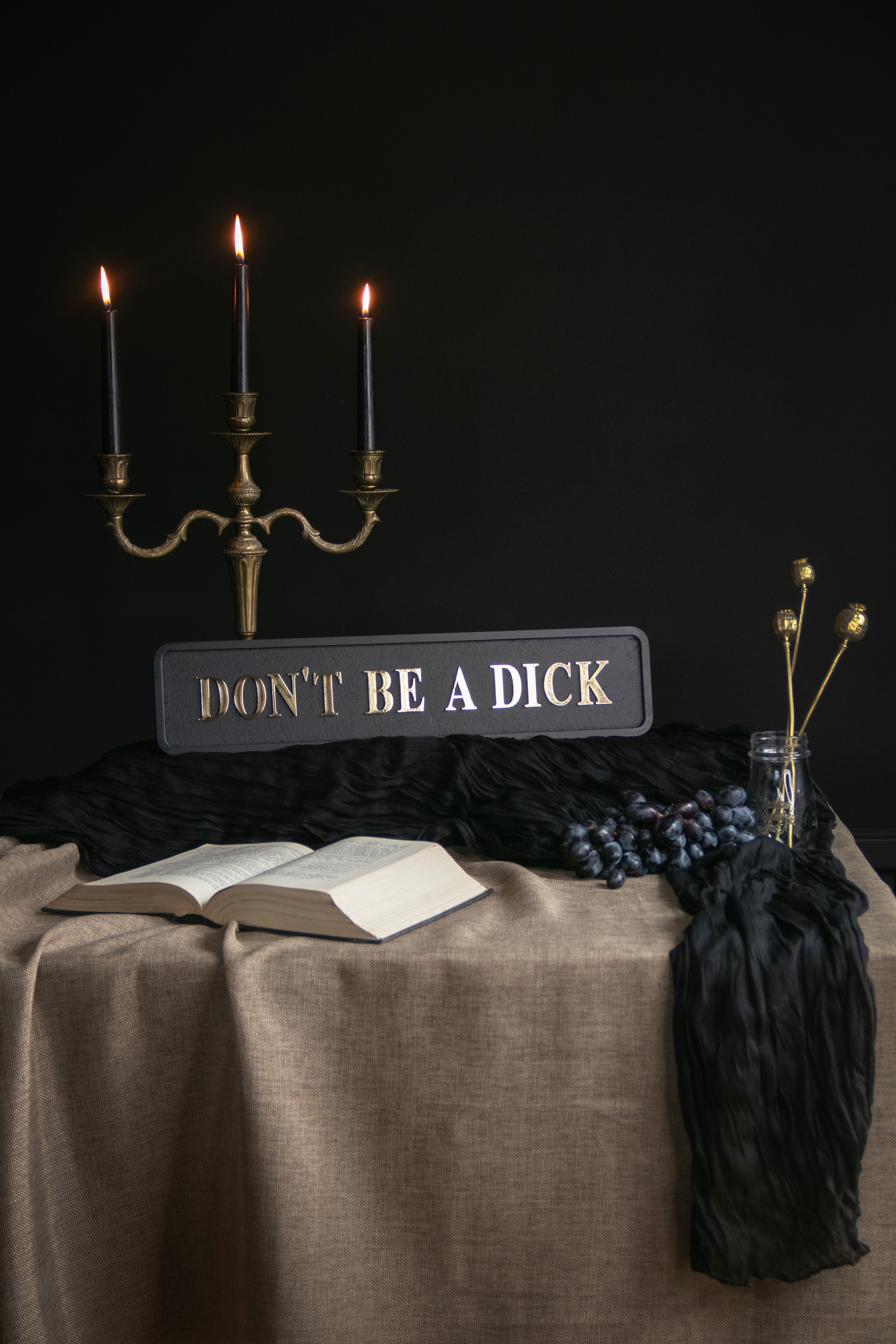 Blunt, brilliant, and impossible to ignore — our black and gold "Don't Be a Dick" sign keeps it classy with just the right amount of sass.